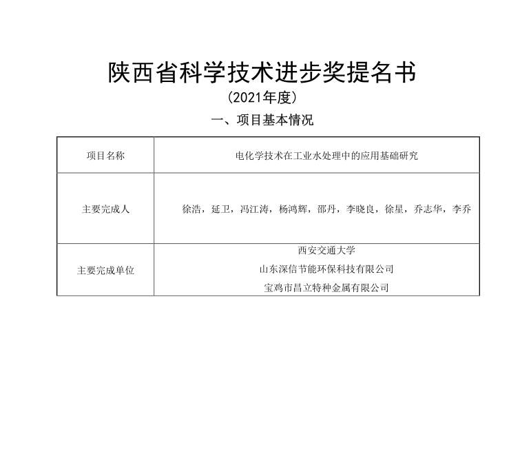 根據陜西省科技獎勵有關要求,現將我司2020年度陜西省科技獎合作申報項目 “電化學技術在工業水處理中的應用基礎研究”信息在公司主頁(http://www.cw888.com.cn/)上公布,向全校征詢異議。